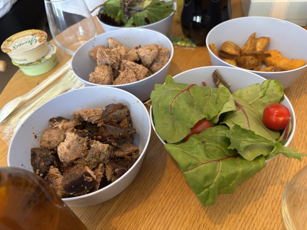 本場オージービーフのステーキをサラダと共にたいらげる。