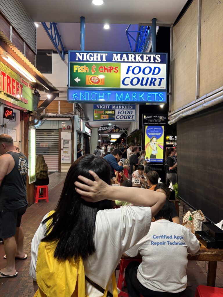 ケアンズは治安がよく、夜歩いてマーケットへ行けます。