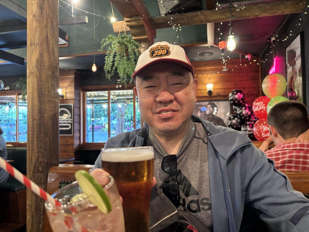 物価は高く、ハンバーガーとポテトのセットで二千円越えです。でもビールも、長い一日に乾杯