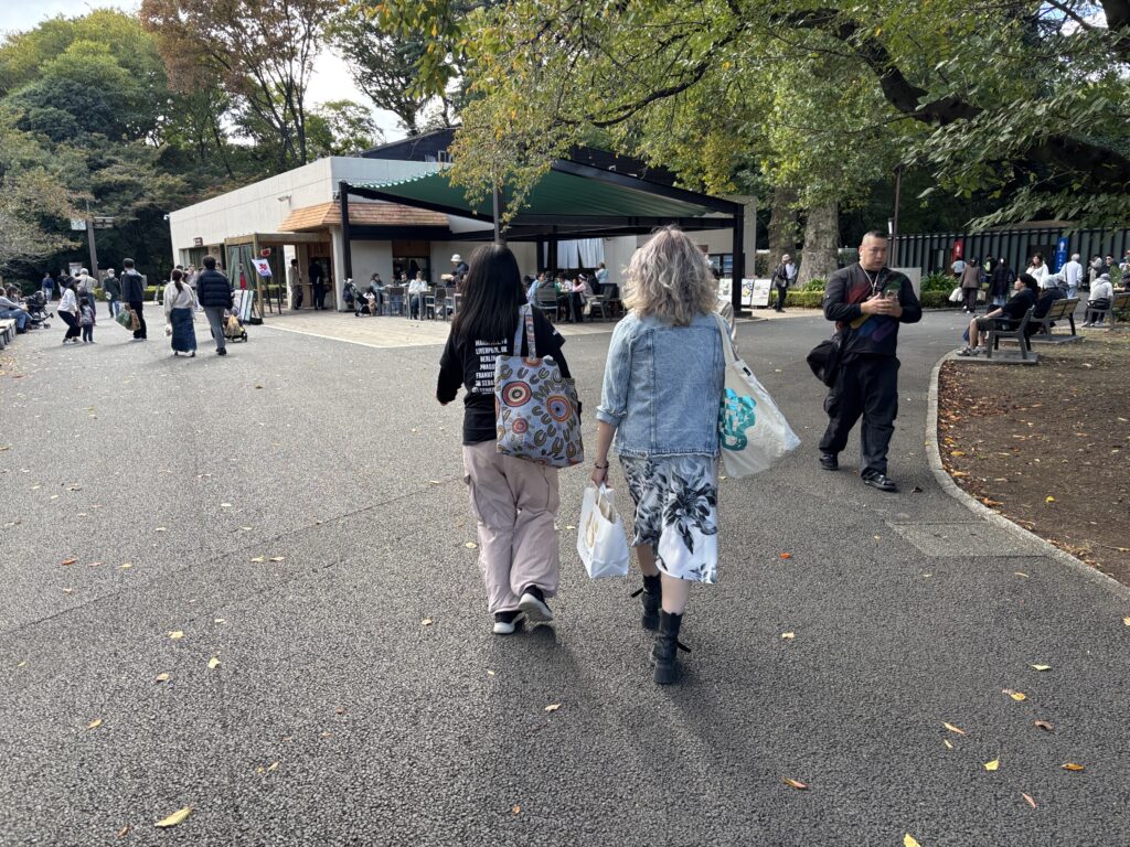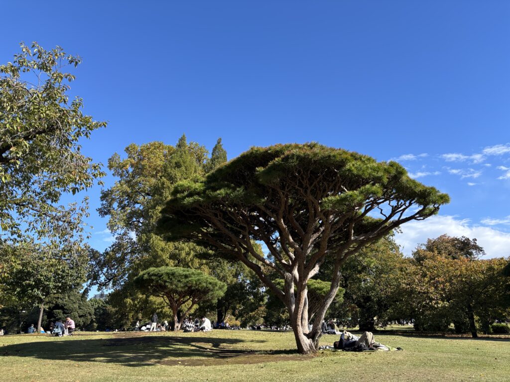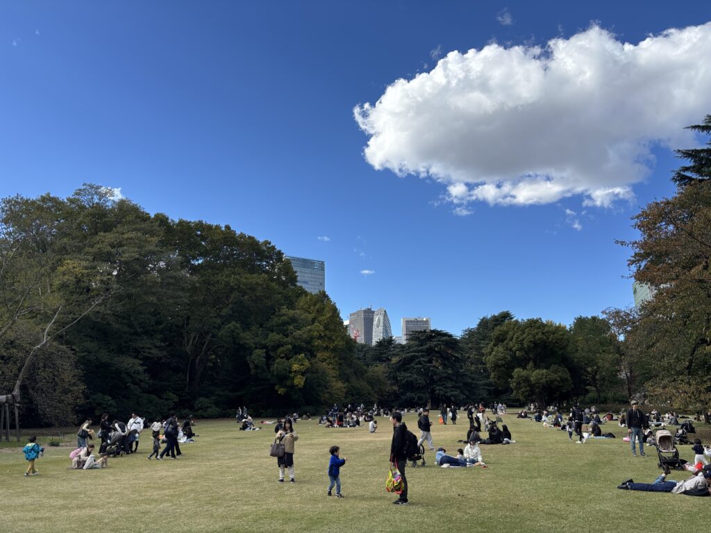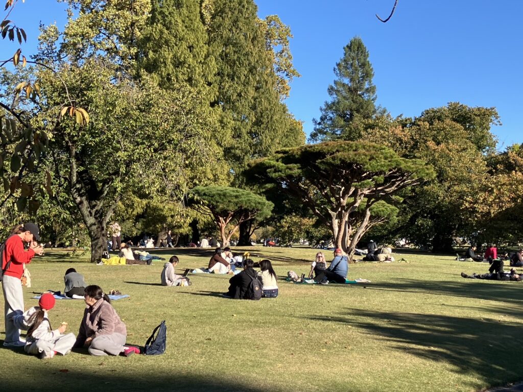 天気が良いので御苑まで行きピクニック。コンビニへより、それぞれアルゼンチンとオーストラリアのお土産を広げていい気分