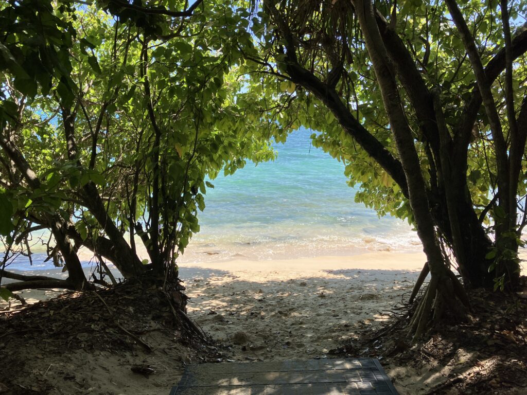 小さな島で約二時間くらいのんびり、ー島内のビーチの青を楽しみます